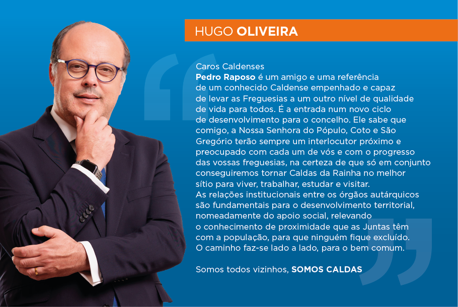 Os caldenses do Pópulo, Coto e São Gregório reconhecem nos membros da Lista AD – PSD/CDS capacidade para fazer acontecer um Projeto que os une sob o lema SOMOS CALDAS. Na liderança e composição deste Projeto encontram rostos conhecidos do contacto no dia-a-dia, podendo contar com proximidade pela frequente presença nas ruas, nos bairros e em atividades sociais, culturais, desportivas, entre outras em espaço público.